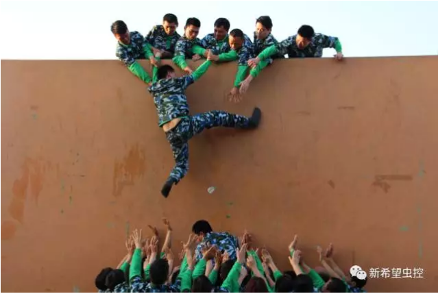 凝聚力--畢業(yè)墻,新希望小伙伴們的血淚史。隊員犯錯,隊長受罰。在我們的隊伍里面,總有著那么一兩個人不能按要求執(zhí)行,總犯著這樣或那樣的錯誤,生活中個人犯錯獨(dú)自承擔(dān),這是責(zé)任,自己對自己負(fù)責(zé);工作中一人犯錯領(lǐng)導(dǎo)受罰,或者全隊受犯,這是團(tuán)隊,領(lǐng)導(dǎo)對團(tuán)隊每一個人負(fù)責(zé)。四十多人的團(tuán)隊,經(jīng)過一次又一次的磨難,大家凝聚在一起,十一分鐘多全部翻越畢業(yè)墻,這是今天拓展最完美的收工。