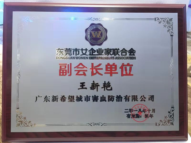 【喜報】熱烈祝賀東莞市有害生物防制協(xié)會王新艷會長當(dāng)選東莞市女企業(yè)家聯(lián)合會第二屆理事會副會長!并榮獲第一屆理事會優(yōu)秀會員獎。